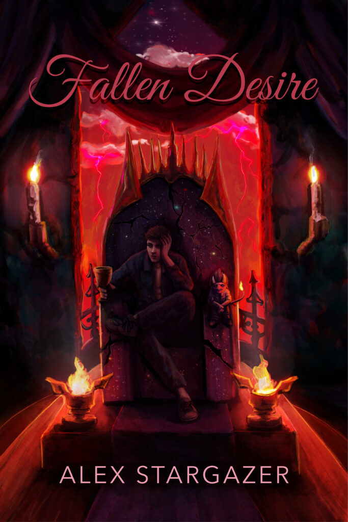 Fallen Desire is a fantasy adventure novel about boyfriends separated between the realms of Hell and Earth, each suddenly involved in the political uprisings which will bring them together again.