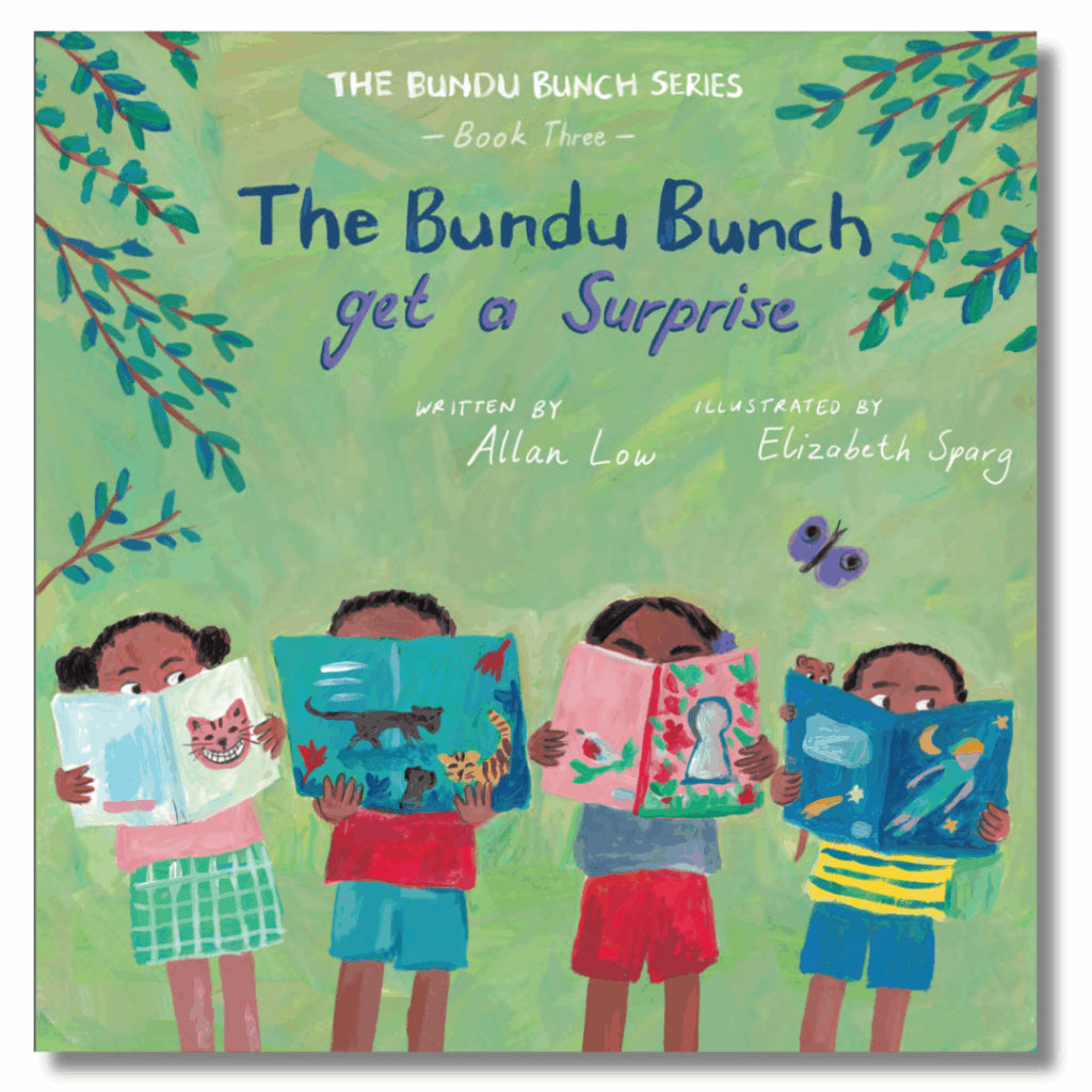 In book two, the Bunch does something empowering, something to fight back against injustice and gain strength. And now, in The Bundu Bunch Get a Surprise, they’re discovering something to have of their own: an empty field, suitable for a makeshift, private classroom. This turns out to be another meaningful story about appreciating something as simple as an open field.
