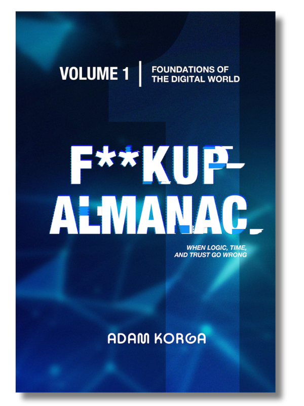 While some books ask readers to imagine new worlds, Fuckup Almanac, Volume I: Foundations of the Digital World asks that we look more carefully at the fascinating, sometimes messy one we live in now. In doing so, author and technologist Adam Korga pulls back the curtain on the digital systems we rely on every day and examining how they fail (often quietly and predictably) with both expert-level knowledge and wry, relatable wit.
